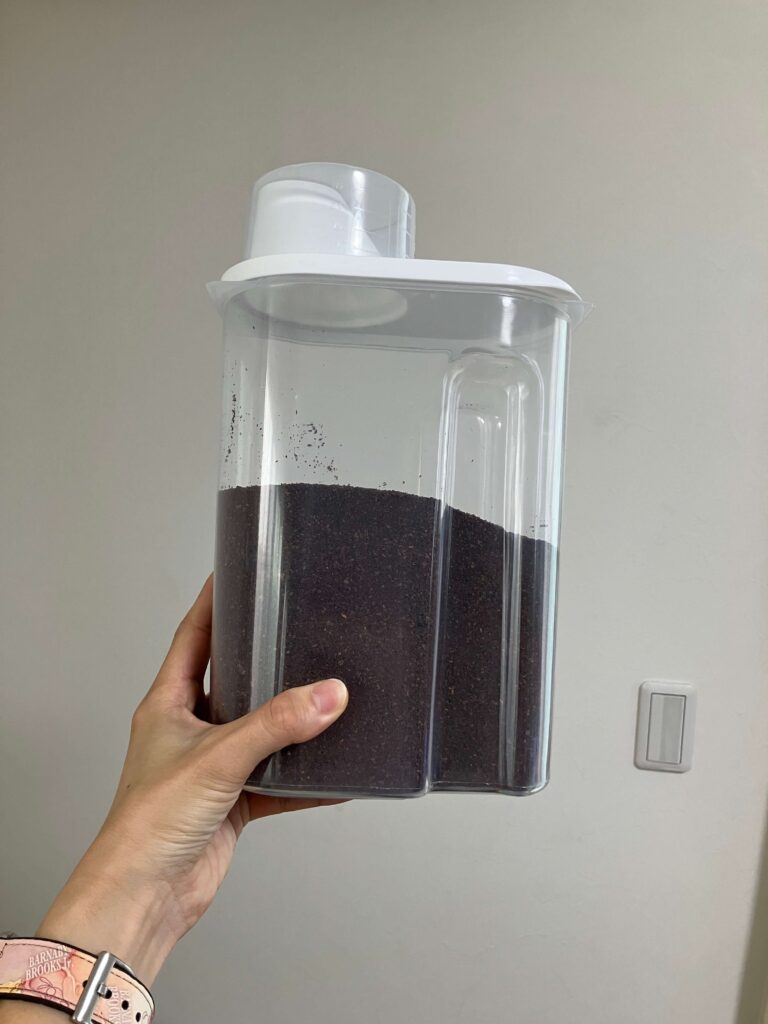 すぐに捨てるのも癪なので、レギュラーコーヒーの保存容器になりました。